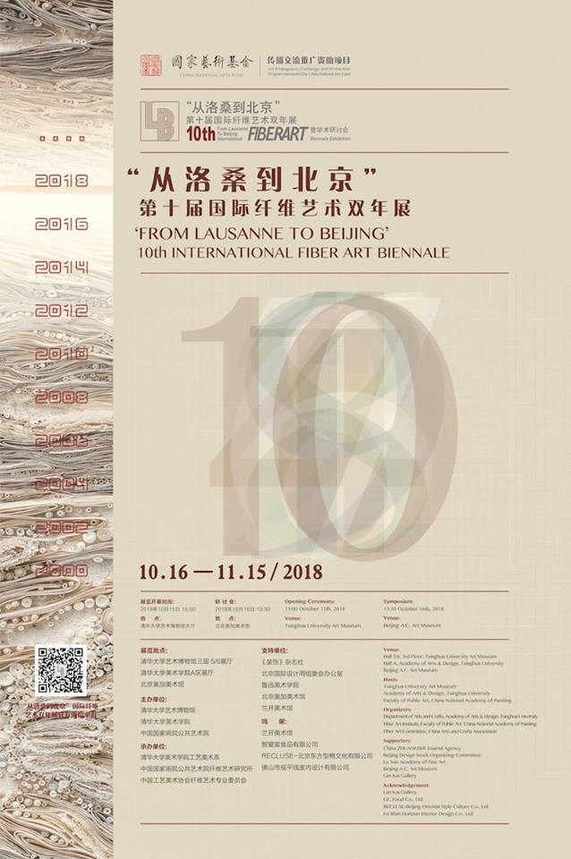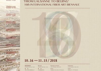 Catalogue de l’exposition« FROM LAUSANNE TO BEIJING » 10TH INTERNATIONAL FIBER ART BIENNALE will be hold at OCT 15th,2018 to 15th november at Tsinghua University Art Museum; The Gallery of Academy of Arts & Design, Tsinghua University Beijing A.C. Art Museum in Beijing.