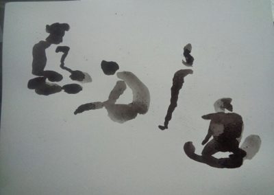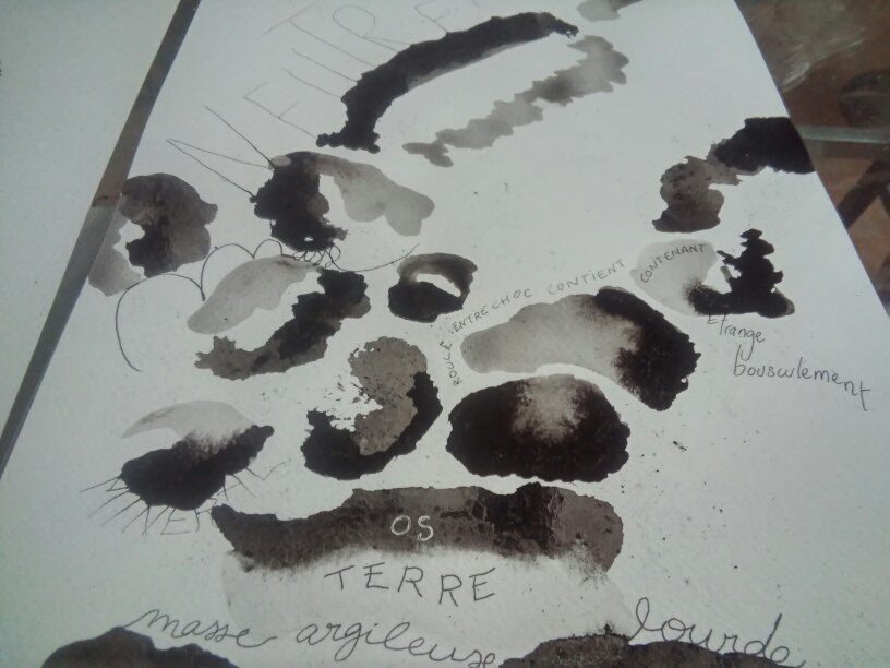 Tu divagues d’intentions, lumineuses, en cercles, concentriques, excentriques, elles se propagent. La contrainte agit comme espace de liberté, quand tout commence et s’efface, tout s’ancre et s’encre et devient. S’élance le corps poème, prononcé dans les mots matières. Je t’aime à tomber par terre!