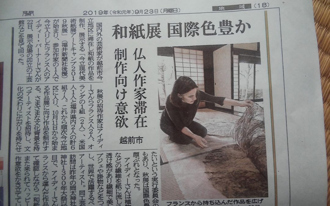 Aïdée Bernard, artiste française de renommée internationale a rejoint la résidence d’artiste. Sept autres artistes invités, un autre français, deux hollandais, un américain et deux japonais du département de Fukui.