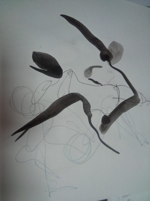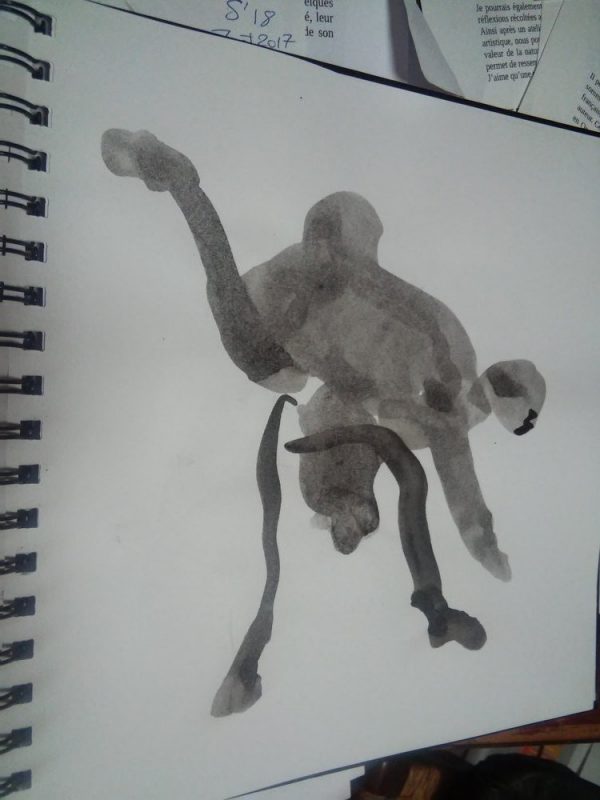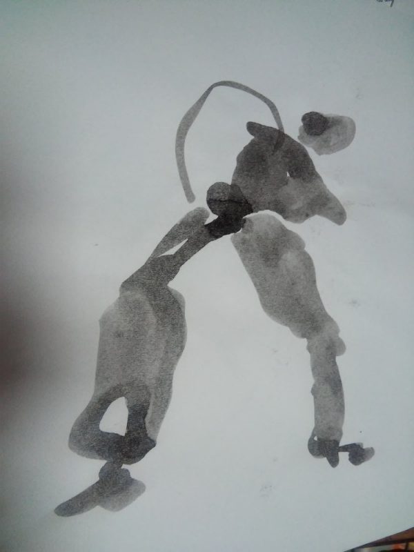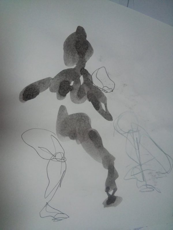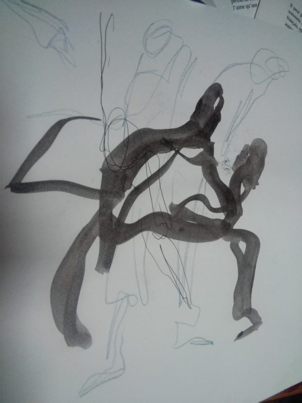 Atelier de contact impro avec Marjorie puis Jam, où je tente de capter les mouvements des corps qui inter-agissent les uns avec les autres.