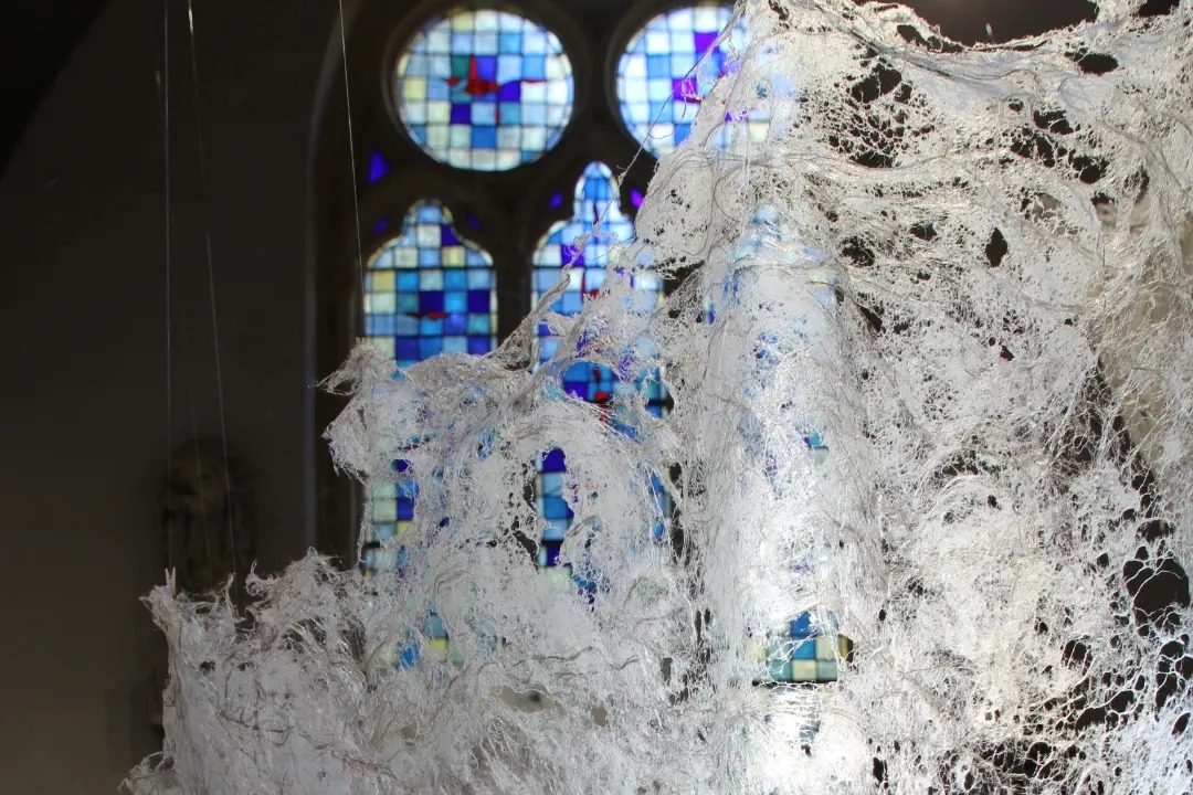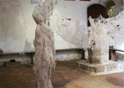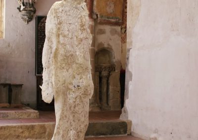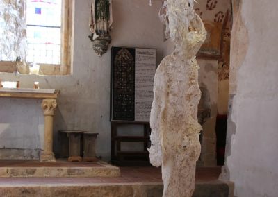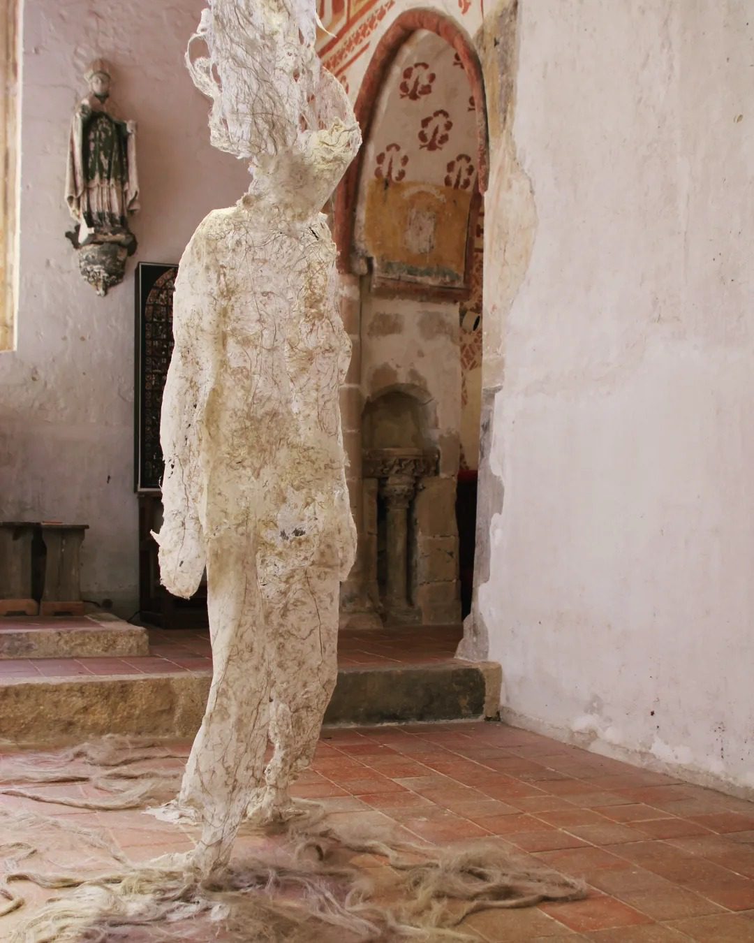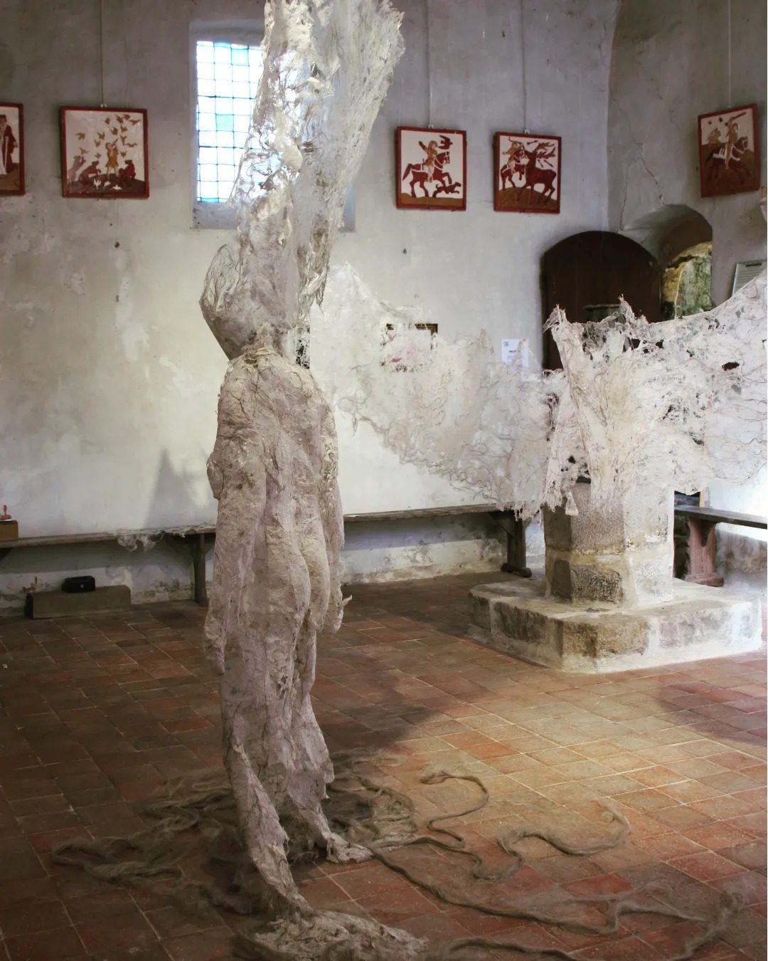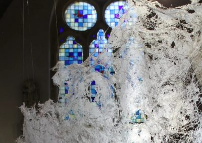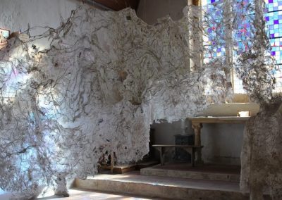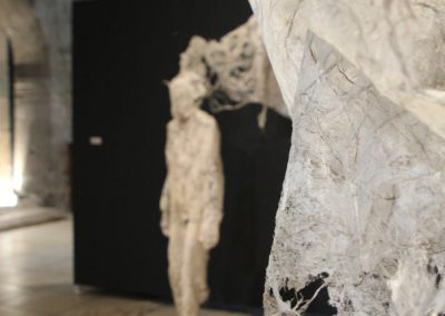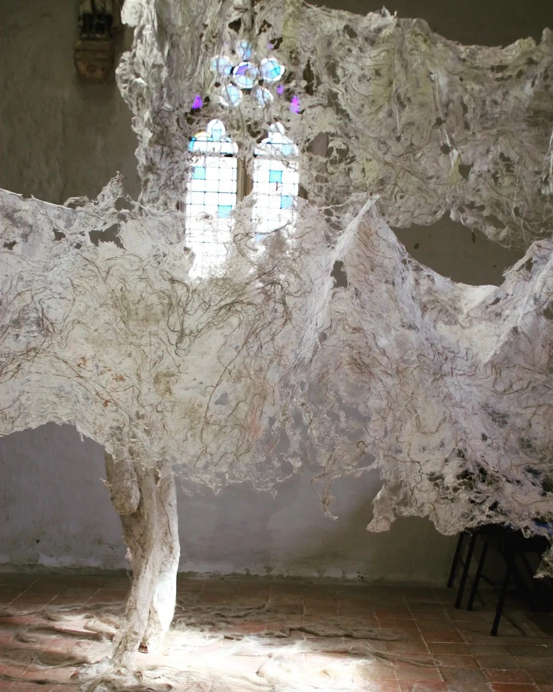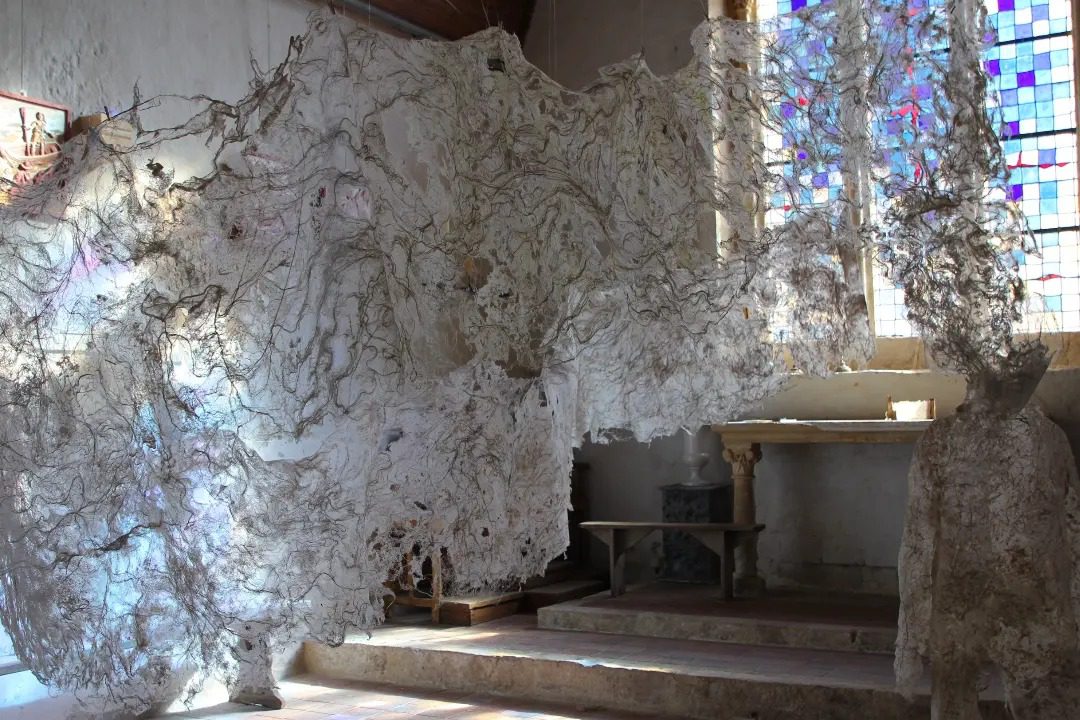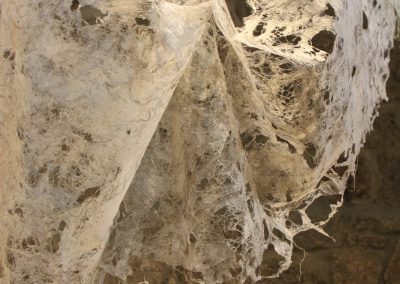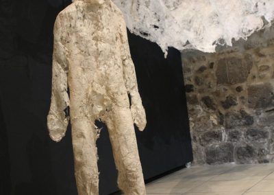 Fluide Installation en papier de fibres de celluloses de lin Œuvre en papier de fibres de lin, 1m de large, 12m de long avec une mue taille humaine.