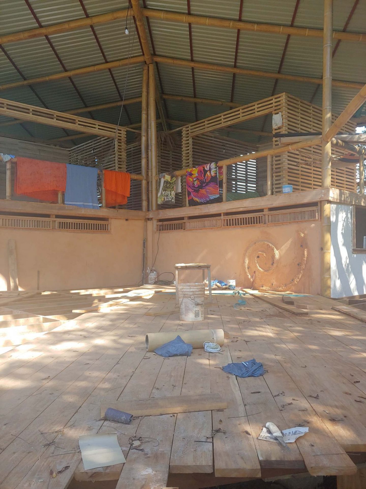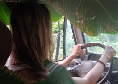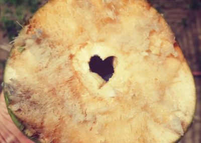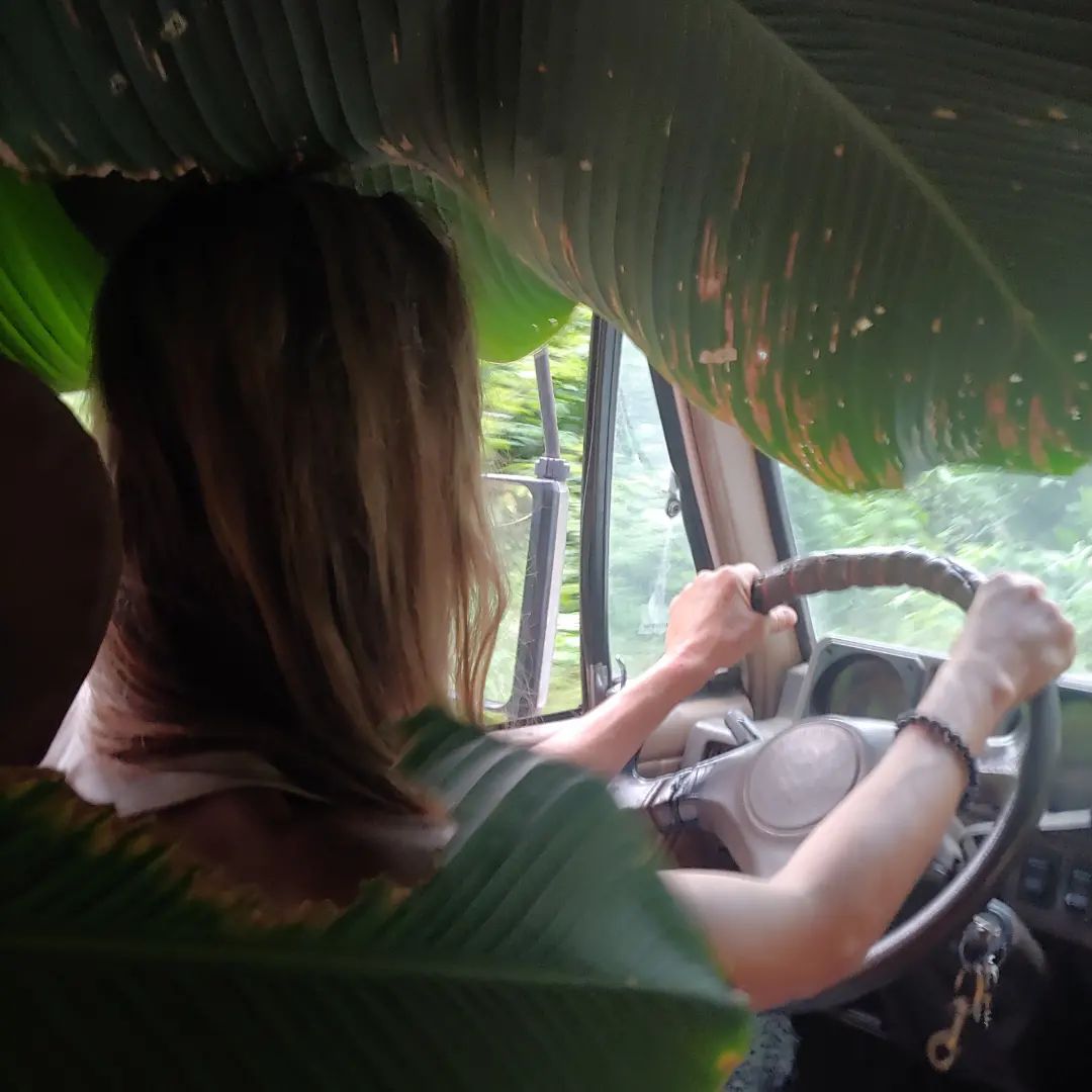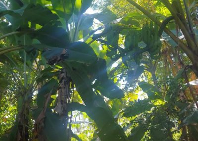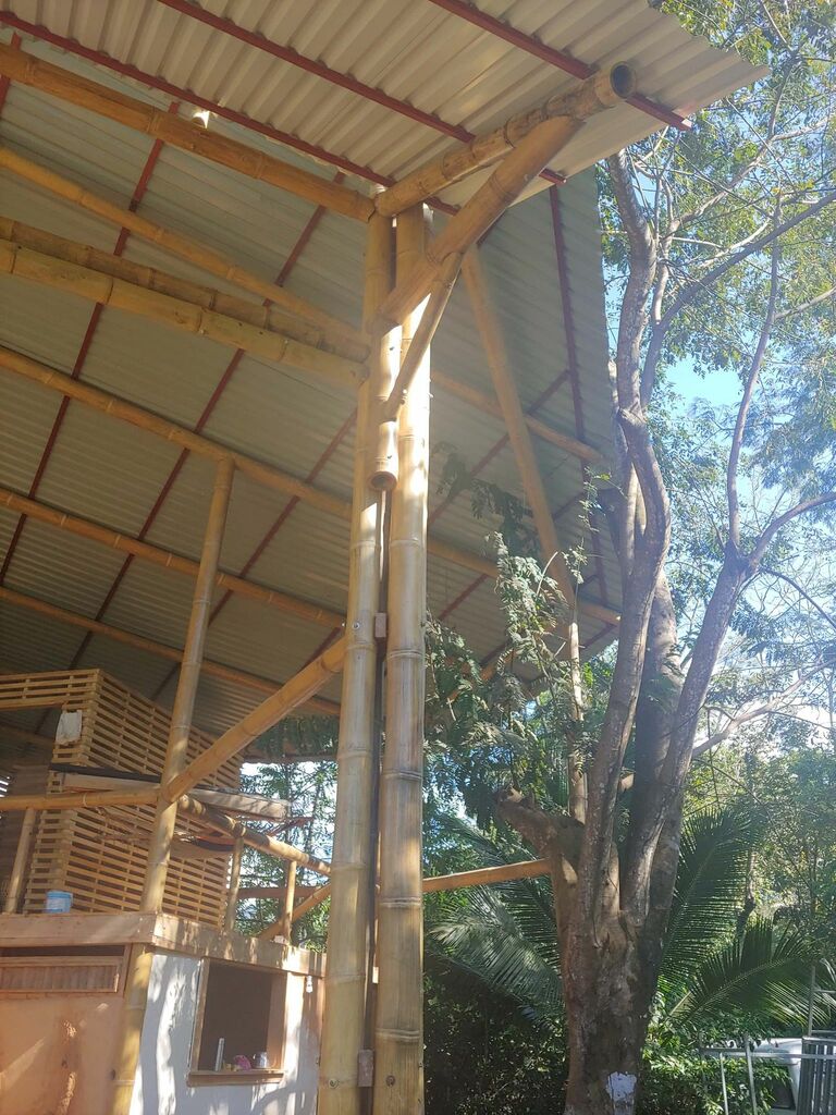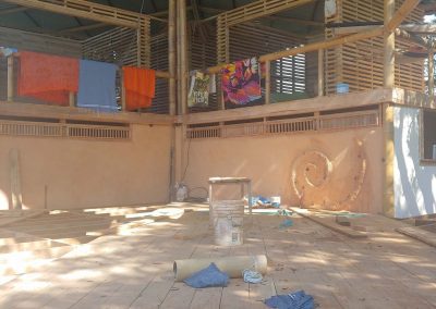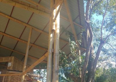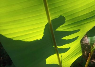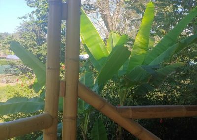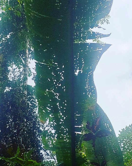 Cette résidence commence avec l’invitation de Marie dans son lieu de création Le Diamant Vert, où je réside pour un mois. C’est son fils qui a conçu les plans de cette maison en bambou ouverte sur la forêt et les champs avoisinants, avec un arbre qui s’entrelace avec le corps du bâtiment. C’est un lieu où observer la nature, se mettre à l’écoute. Ce matin encore j’y observe 6 grands Arras aux plumes multicolores parader pour la saison des amours dans le grand guanacaste. Le guanacaste, c’est l’arbre aux oreilles car ses fruits ont une forme spiralée qui ressemble au pavillon d’une oreille. Il paraît que si tu as un secret tu peux le confier au grand guanacasté qui le gardera.