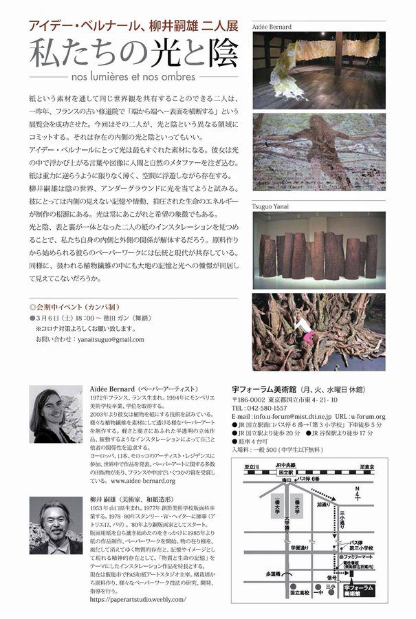 Nos ombres et nos lumières 7 Fév 2021 Nos ombres et nos lumières Aïdée Bernard & Tsuguo Yanai du 4 au 21 mars 2021 à la galerie U-Forum à Tokyo Vernissage le 4 mars à 17h http://www.u-forum.jp/