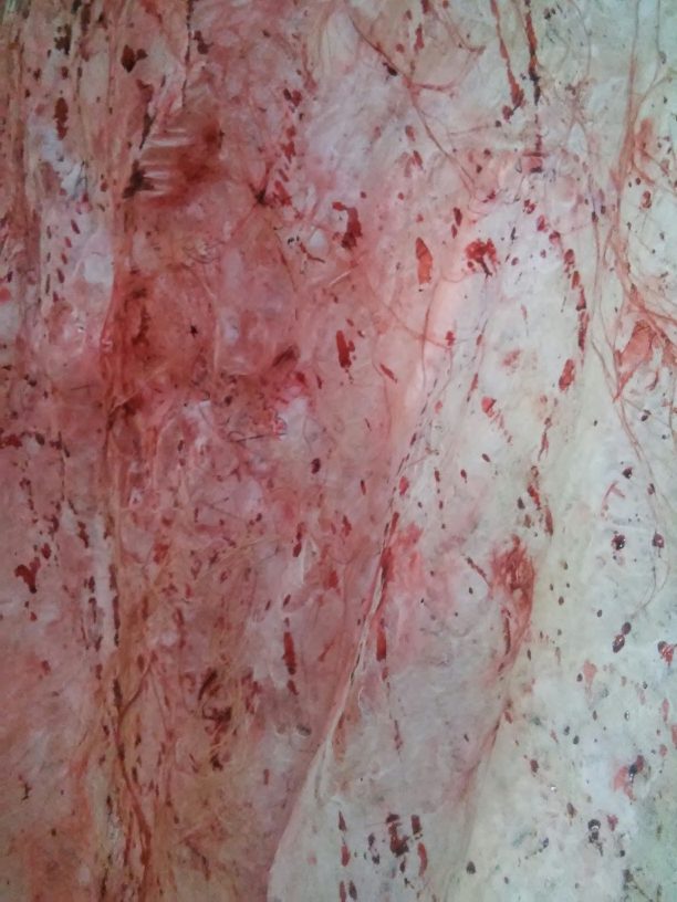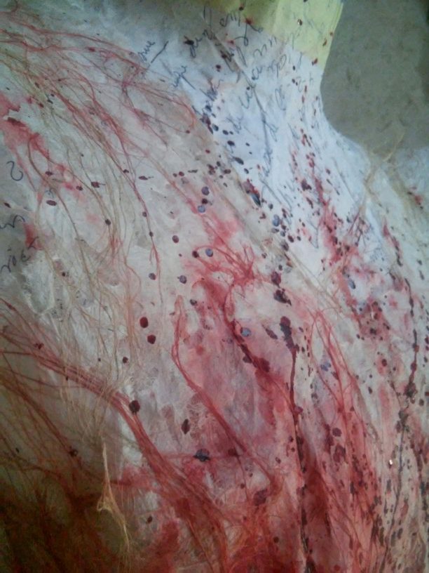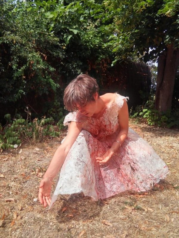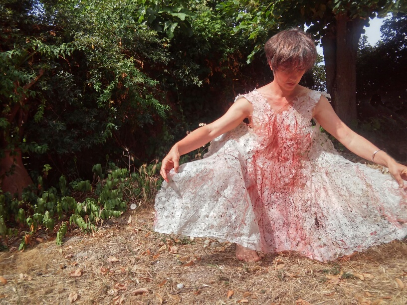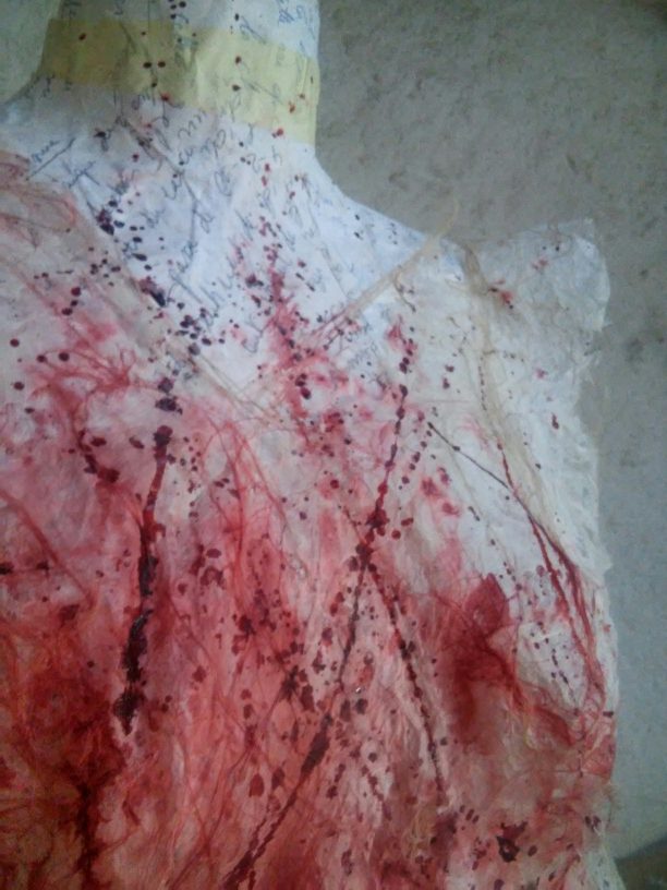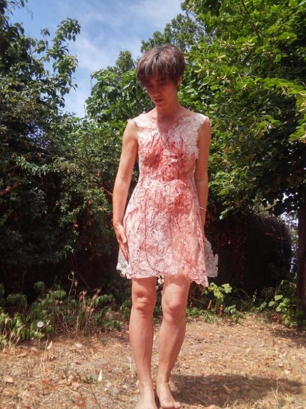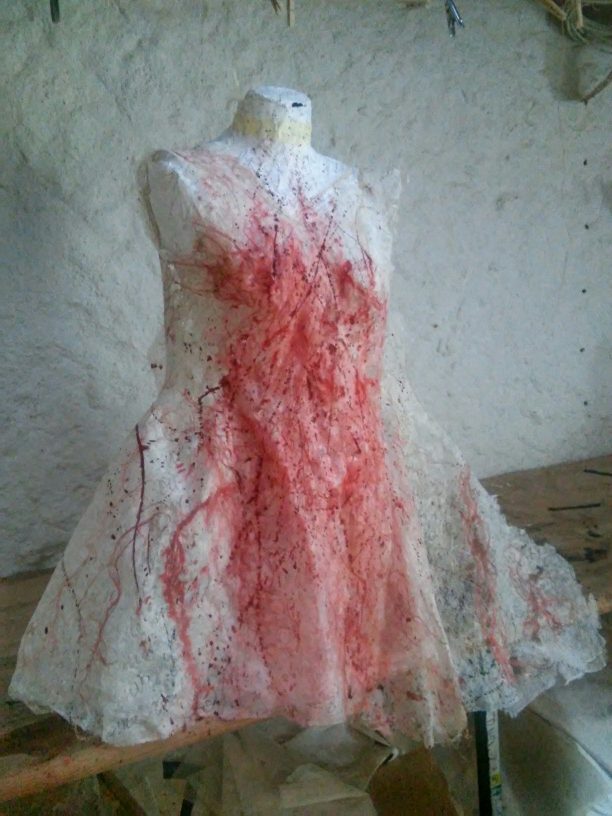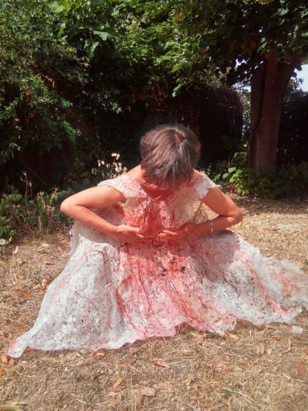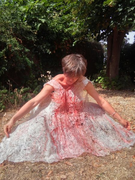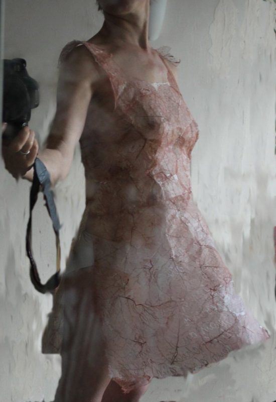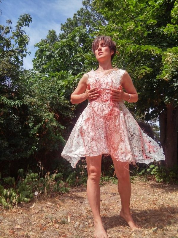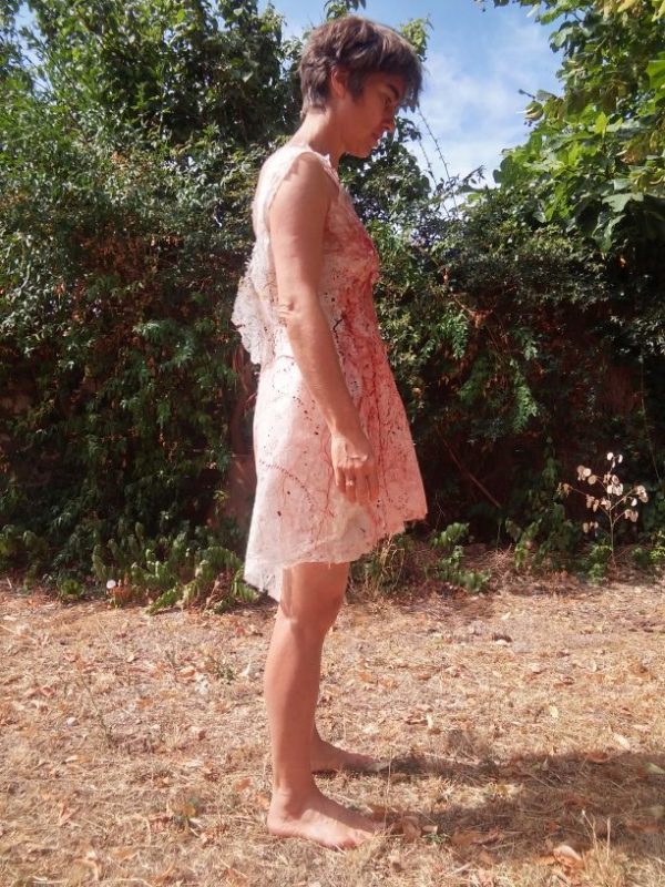 Née de l’amour, la robe « Rivière amoureuse » m’interroge sur la place à prendre, au cœur d’elle, au cœur de moi, chair qui se fait surface.