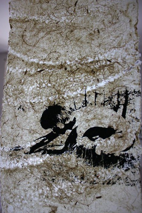 Mon œil ! Tableaux papier végétal entre deux verres avec estampes numériques En corps Tableaux papier végétal avec estampes numériques Sérigraphies sur papier végétal Tableaux papier végétal, graphites, encres et sérigraphies Entremêle-moi Tableaux papier végétal avec estampes numériques